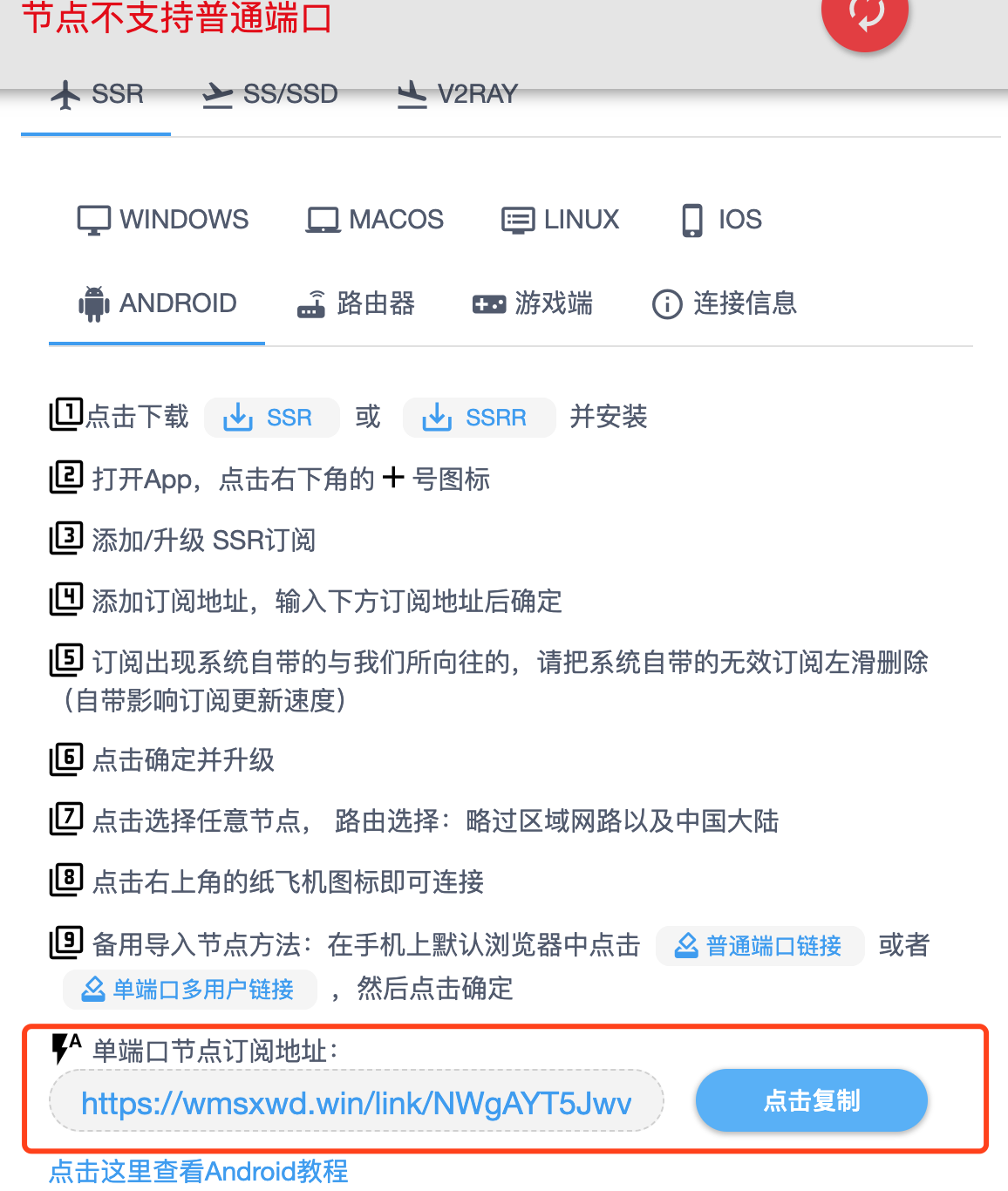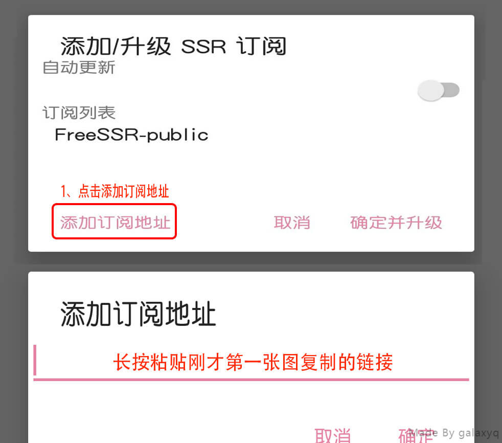 - 点击【添加/升级SSR订阅】,进入添加订阅界面