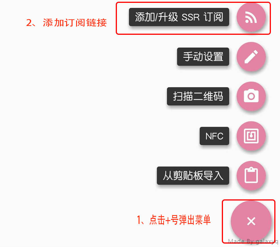- 回到手机的ssr订阅添加界面点击➕号弹出菜单
