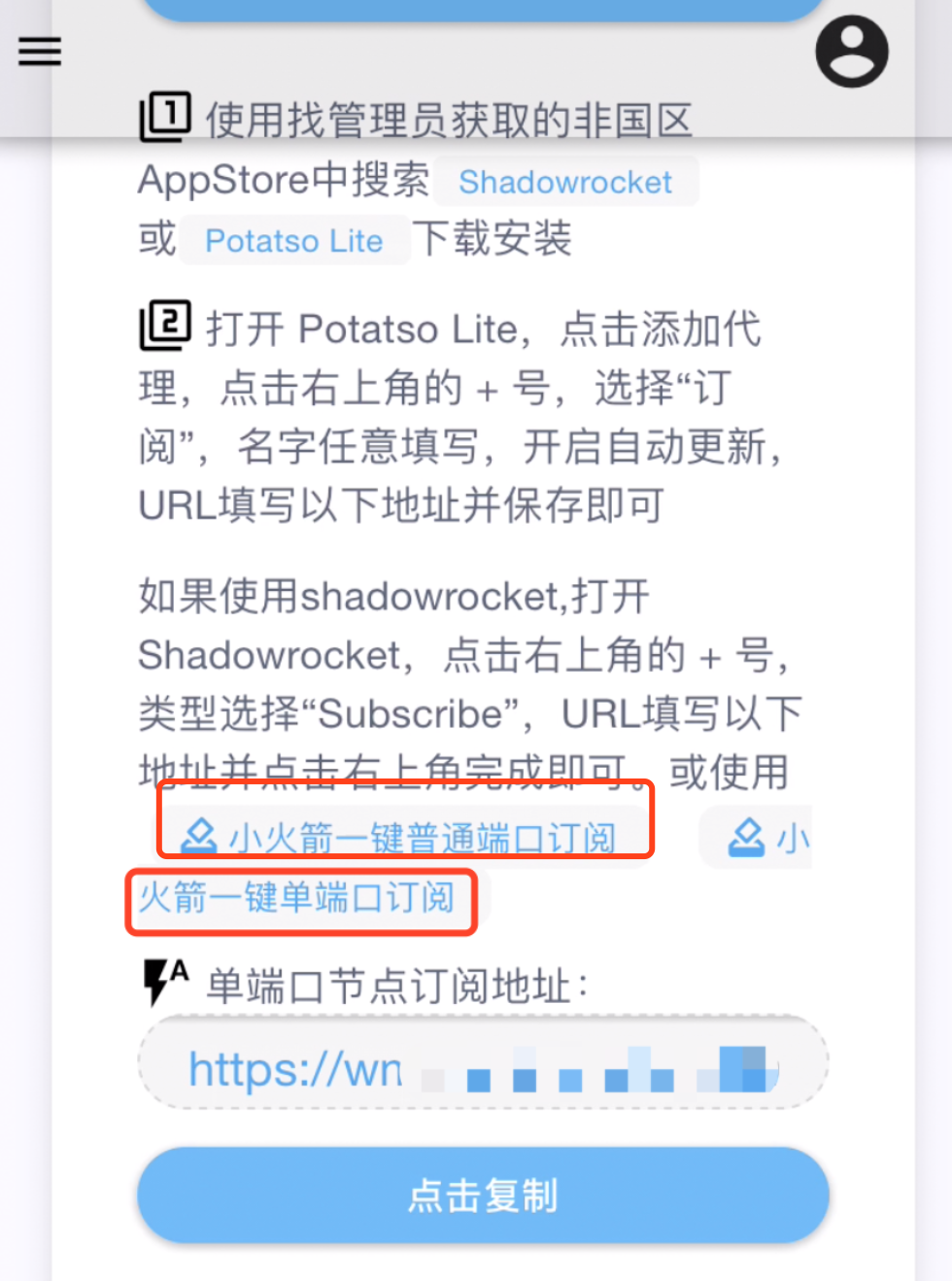 - 向下滑动,找到【小火箭一键普通端口订阅】或者【小火箭一键单端口订阅】