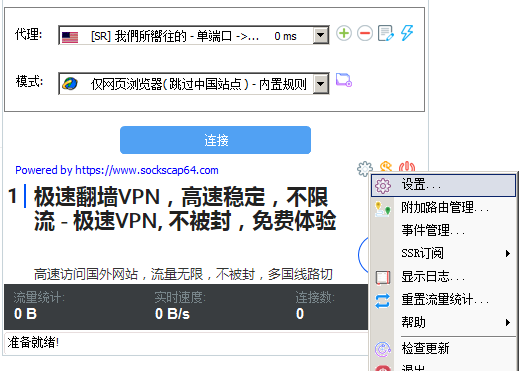 - 选择完成后还不能上网,还需要添加相应的规则,什么是相应规则呢,就是指定什么流量走加速服务,什么流量不走加速服务,请看下面的添加规则