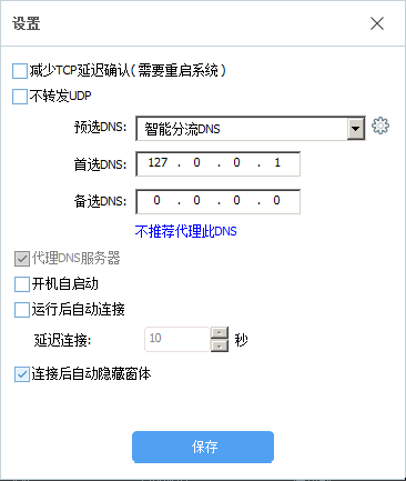 推荐选择谷歌DNS/114DNS,如果你想指定自己的DNS地址,可以选择这个,同时请将【代理DNS服务器】勾选,可以防止国内运营商的DNS污染