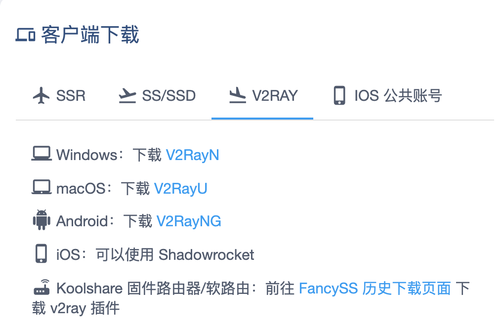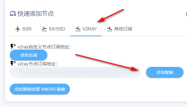 4、下面回到我们的网站,【快速添加节点】---【v2ray】下面的地址,点击复制v2ray地址