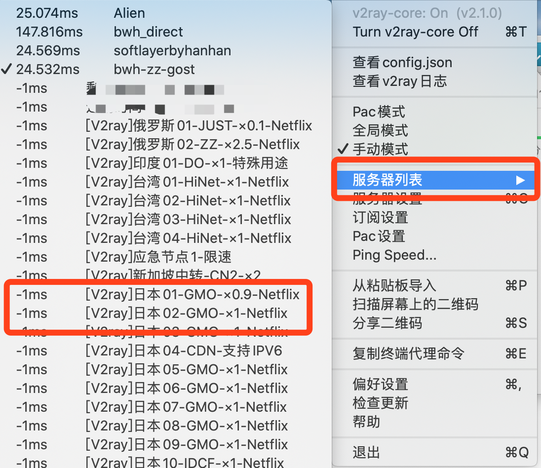 节点后缀为【Netflix】表示该节点可以观看Netflix