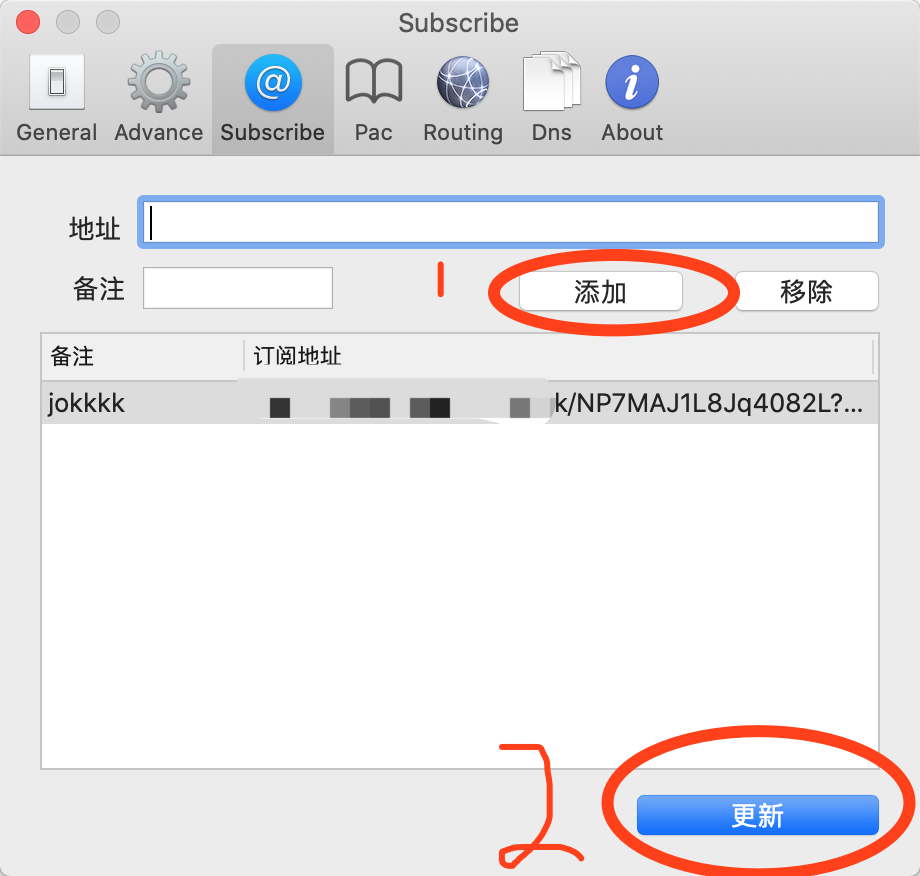 6、然后点击更新订阅按钮,提示【成功更新订阅】则订阅成功,节点格式为【节点名称】x【倍率】