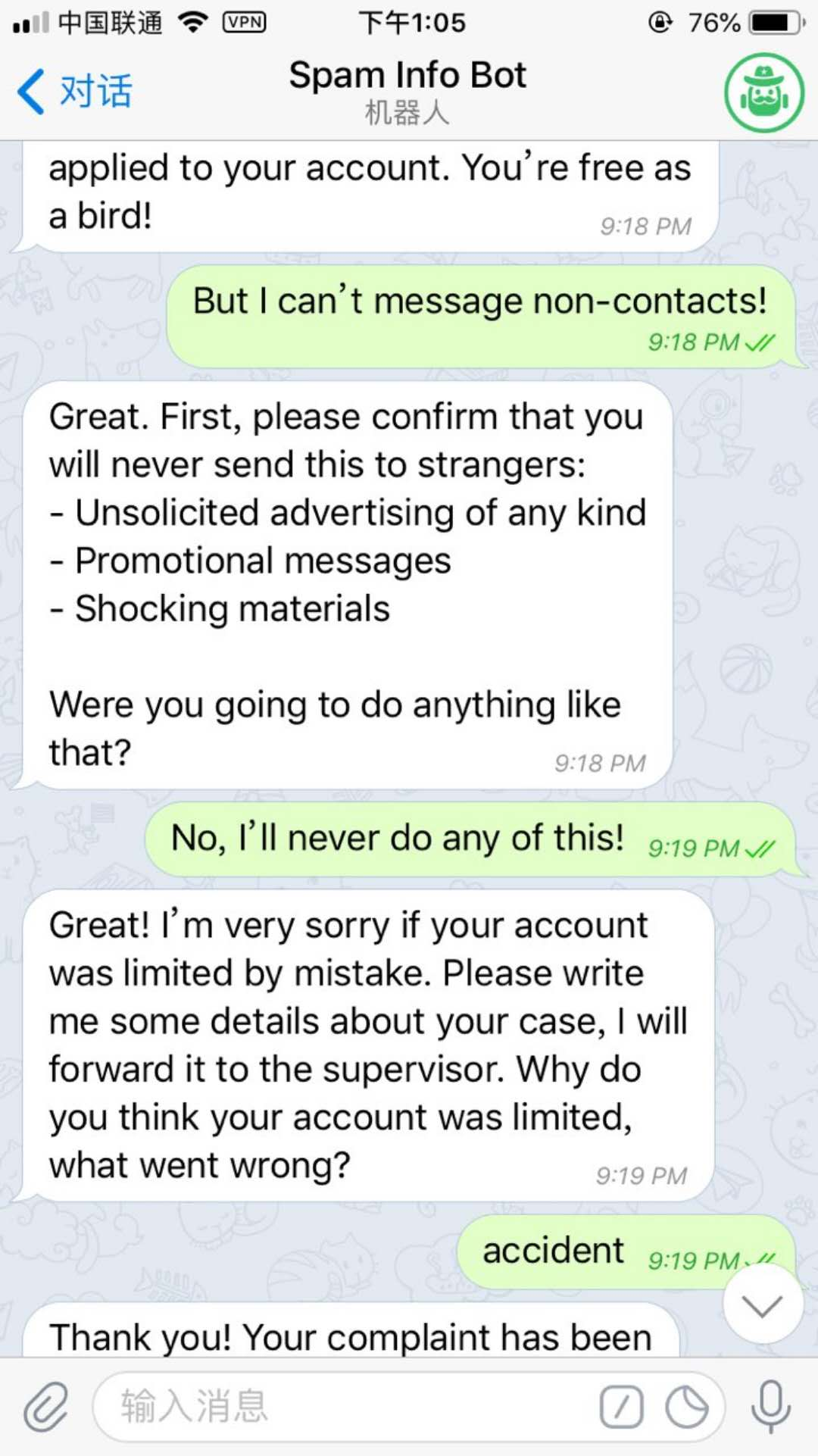 说明你的账号没有任何问题,如果不提示,请继续发送如下对话进行解锁