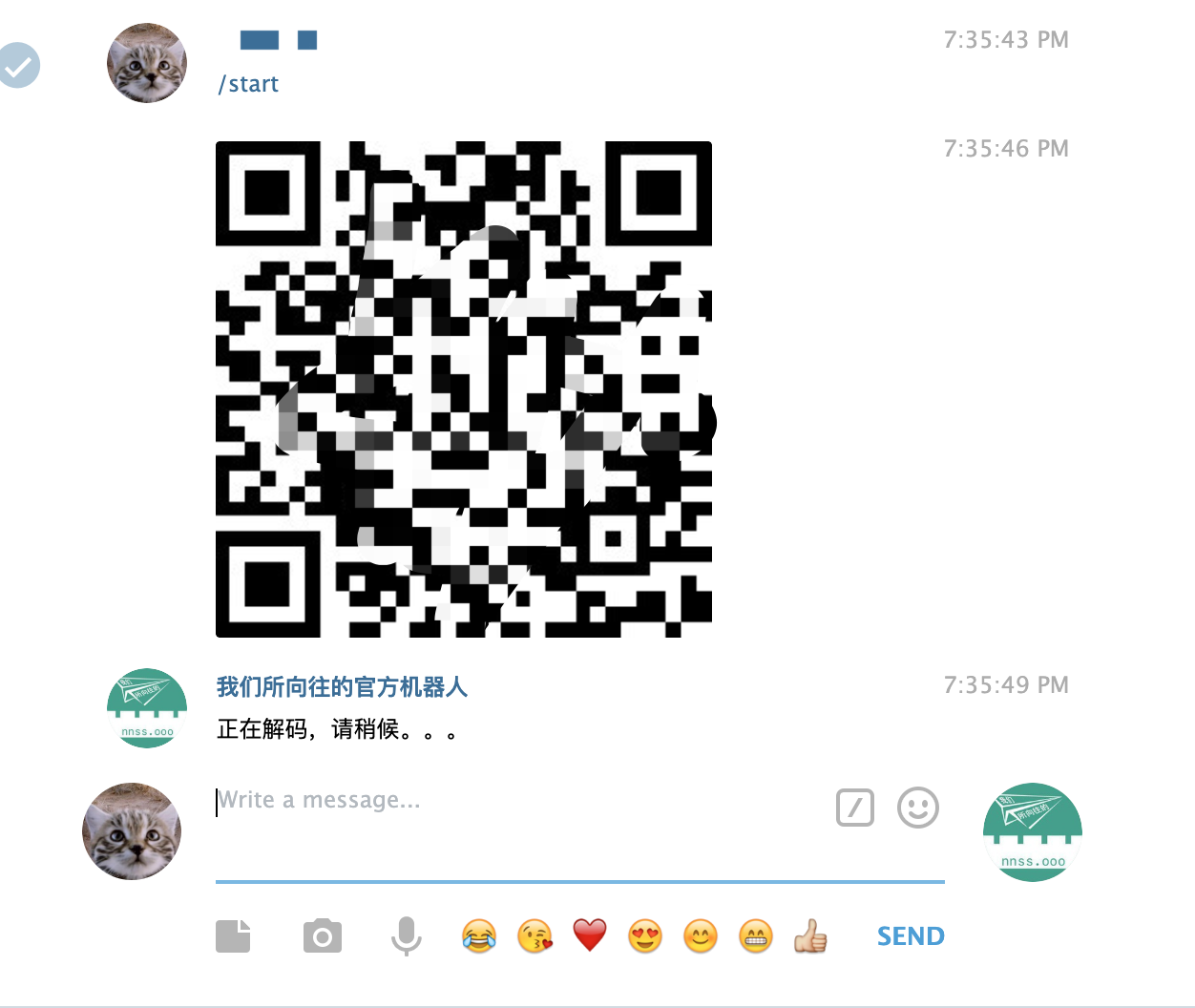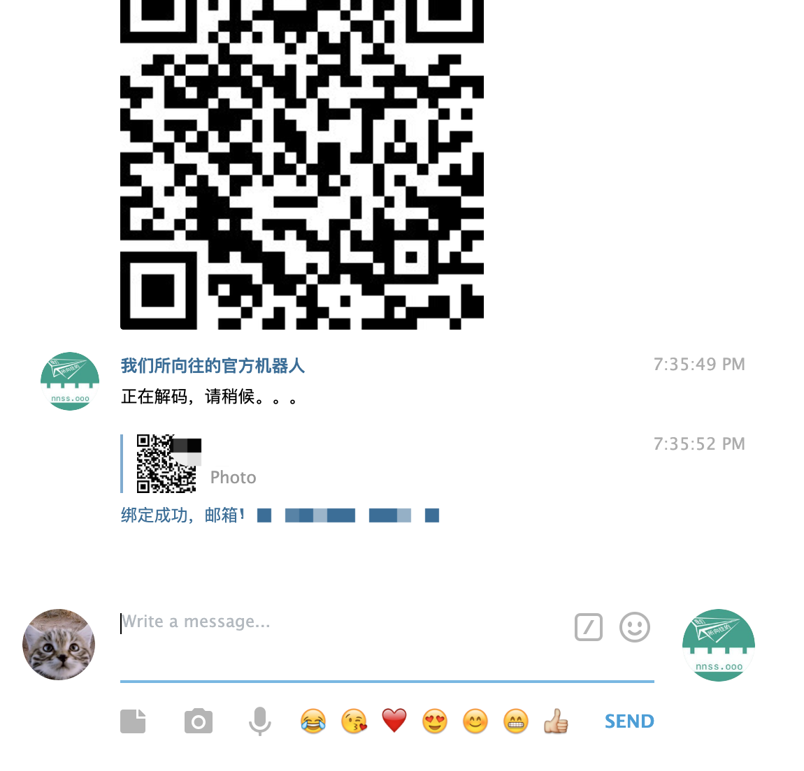 - 然后将你刚刚保存下来的二维码图片发送给他,他会自动解析你的图片完成绑定。