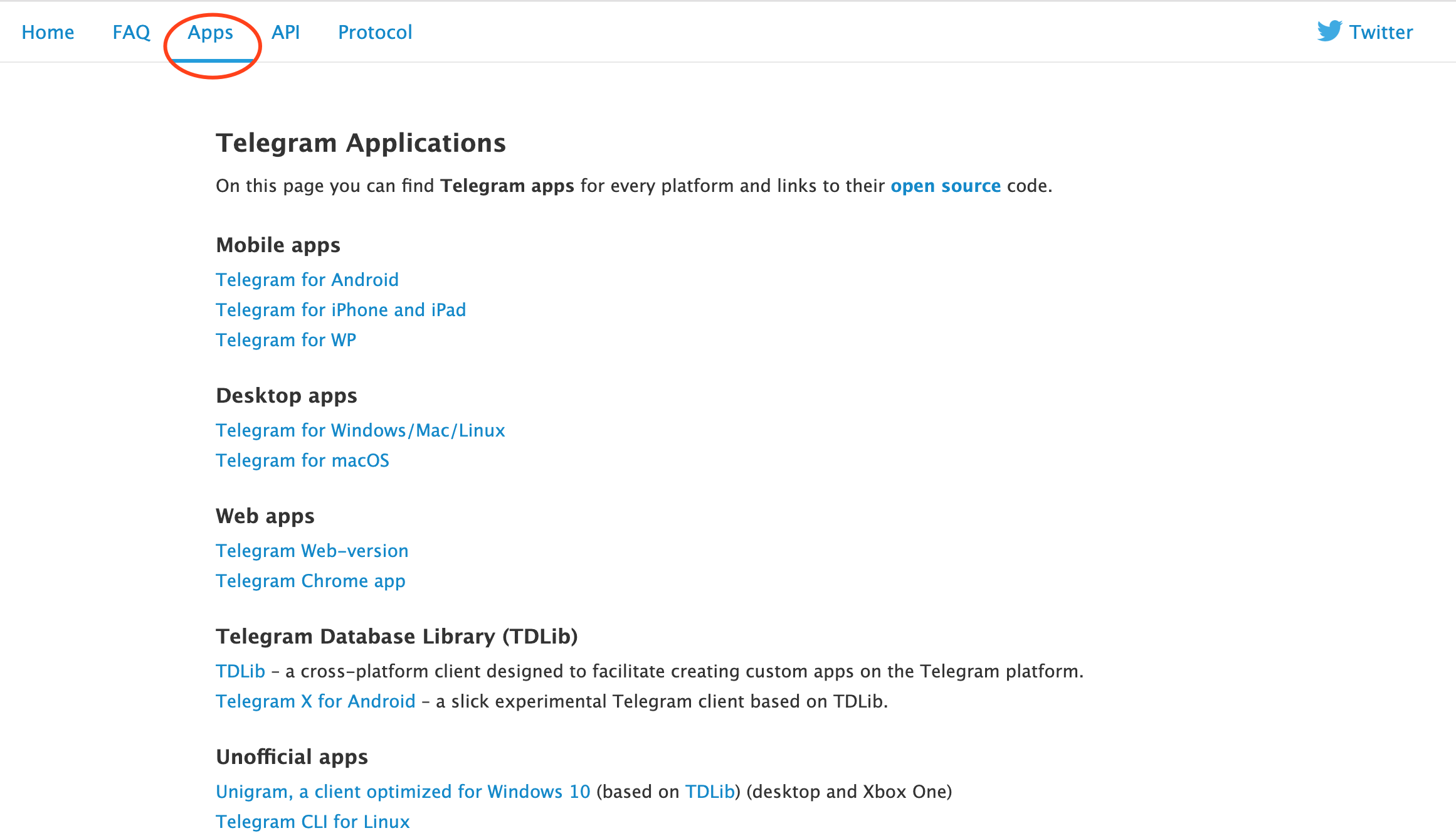- 登录Telegram官方地址https://telegram.org/,【如果打不开,请看基础篇,协调你的服务器配置】